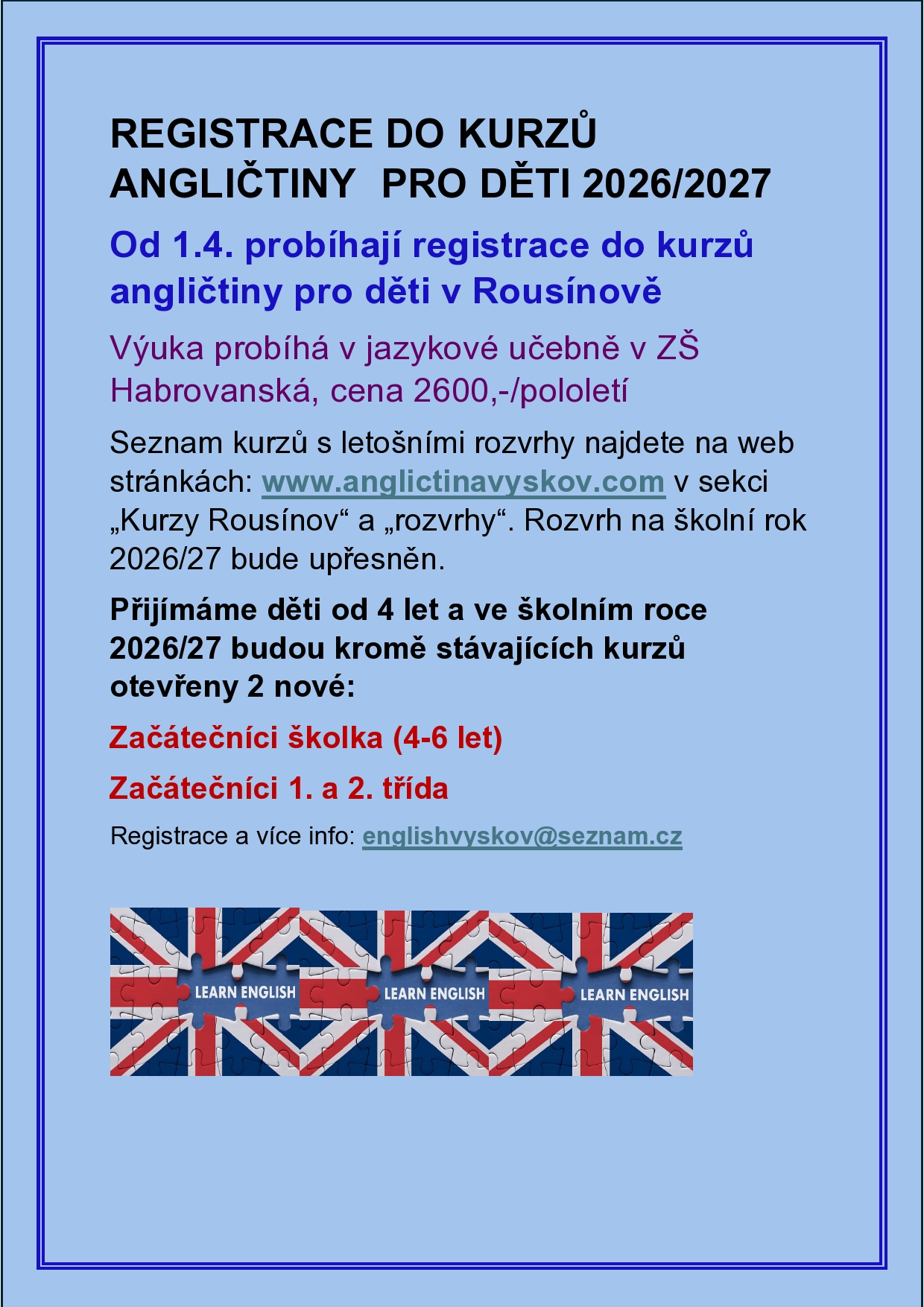 RODIČE DĚTÍ Z ROUSÍNOVSKÝCH KURZŮ - ZASÍLEJTE PŘIHLÁŠKY NA E-MAIL: prihlaskyrousinov@seznam.cz