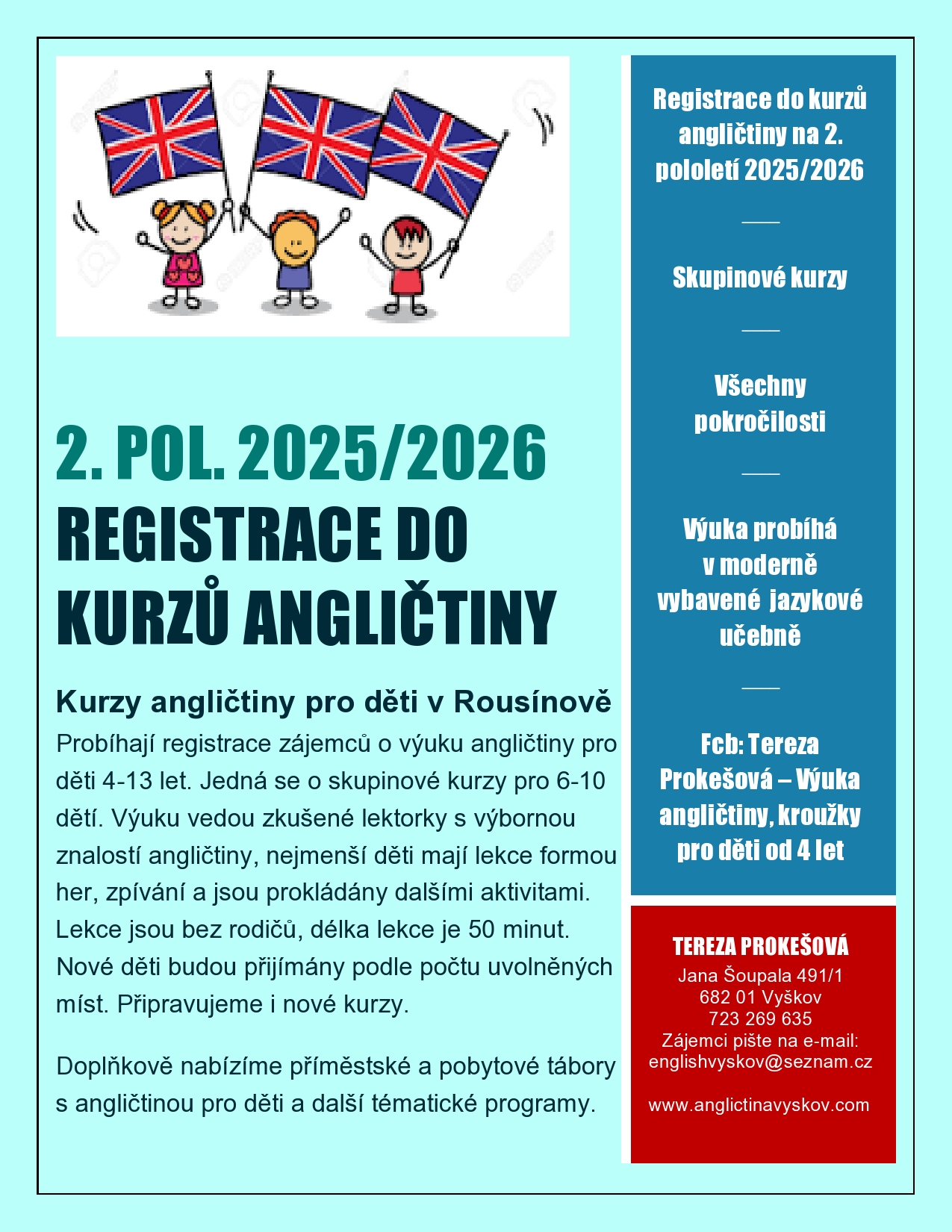 VOLNÁ MÍSTA NA 2. POLOLETÍ 2025/2026 - zájemci pište na e-mail: englishvyskov@seznam.cz